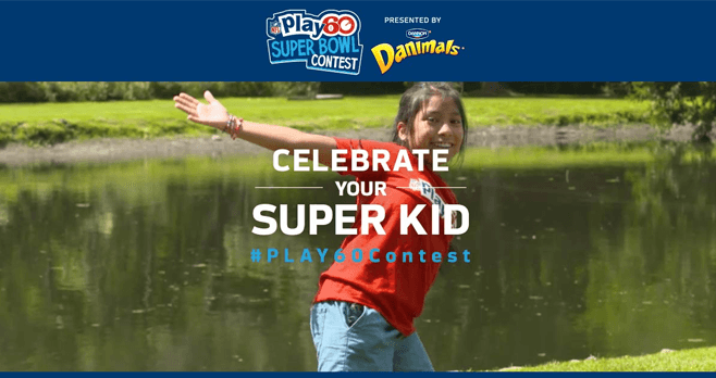 It’s time to celebrate your super kid with the NFL PLAY 60 Super Bowl Contest 2017 presented by Danone Danimals. Upload your child’s best celebration dance online at NFLRUSH.com/superkid or on Twitter, Instagram and Facebook using #PLAY60Contest.