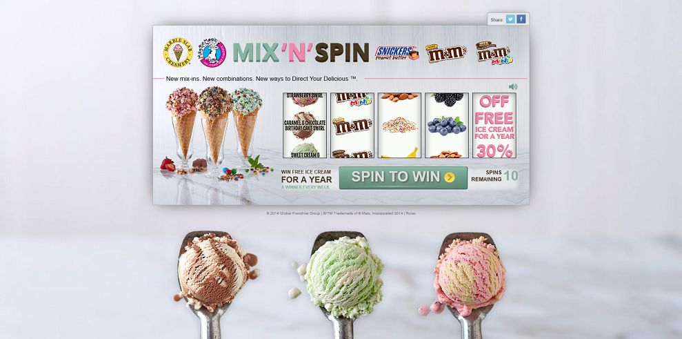 Mix ‘N’ Spin Game : Win a free ice cream for a year prize package