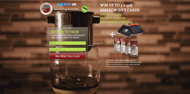 • Prize(s): UP TO 5 x 50$ AMAZON GIFT CARDS AND UP TO 25 kg FRESHLY ROASTED VIETNAMESE COFFEE.