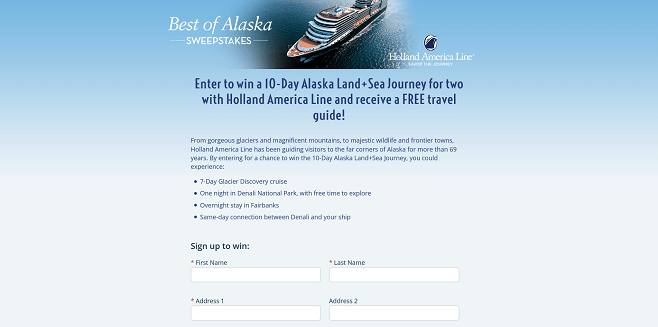 2- Holland America Line Best of Alaska 2016-2017 Sweepstakes